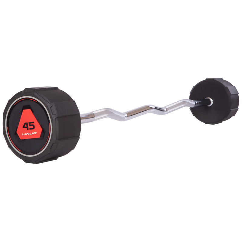Штанга нерозбірна з фіксованою вагою вигнута поліуретанова LI NUO TA-3623-45 довжина-121см 45кг чорний-червоний
