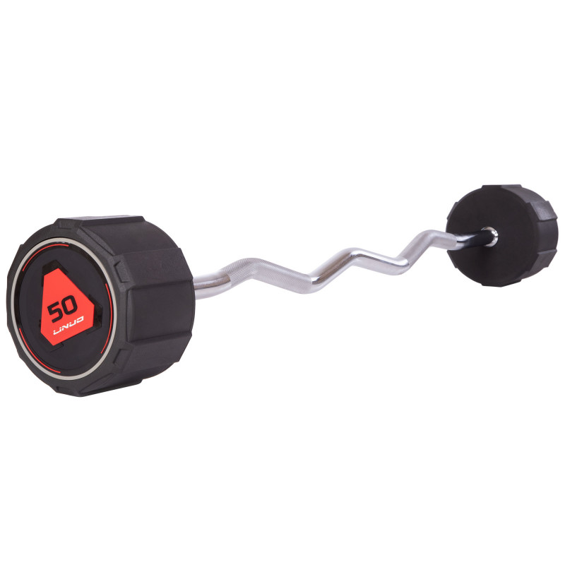 Штанга нерозбірна з фіксованою вагою вигнута поліуретанова LI NUO TA-3623-50 довжина-122см 50кг чорний-червоний