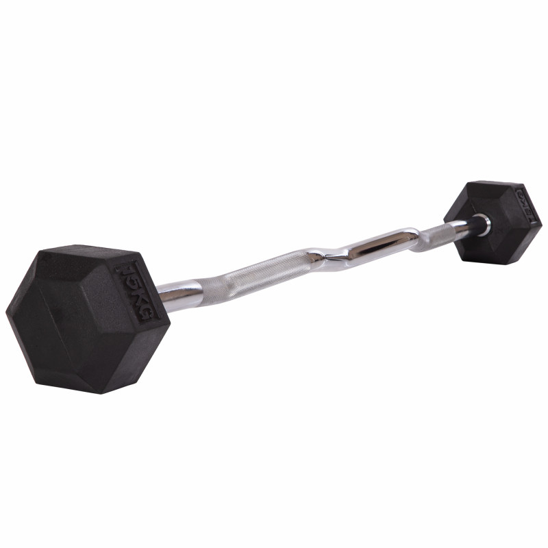 Фіксована вигнута штанга Rubber Hexagon Barbell TA-6231-15 це не просто інструмент для тренувань, а справжня знахідка для любителів якісних та зручних спортивних снарядів. На відміну від класичних розбірних моделей, вона не вимагає складання, що заощаджує час і робить заняття зручнішими. Компактна довжина 95 см дозволяє легко маневрувати снарядом навіть в обмеженому просторі, а завдяки фіксованій вазі атлет може повністю зосередитися на техніці виконання вправ без необхідності балансування снаряда.