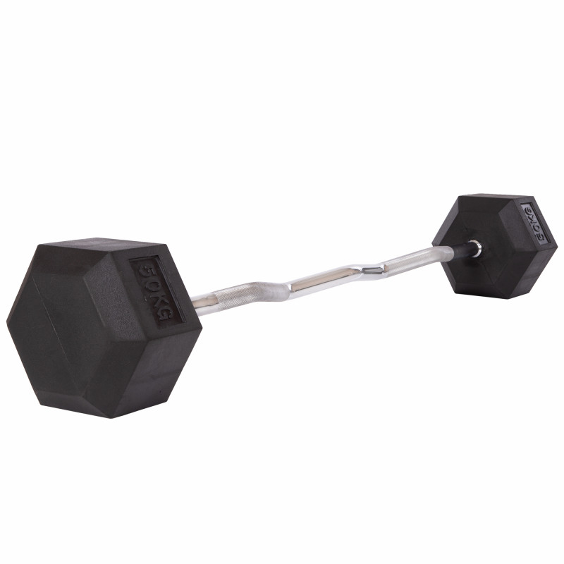 Фіксована вигнута штанга Rubber Hexagon Barbell TA-6231-50 це не просто інструмент для тренувань, а справжня знахідка для любителів якісних та зручних спортивних снарядів. На відміну від класичних розбірних моделей, вона не вимагає складання, що заощаджує час і робить заняття зручнішими. Компактна довжина 95 см дозволяє легко маневрувати снарядом навіть в обмеженому просторі, а завдяки фіксованій вазі атлет може повністю зосередитися на техніці виконання вправ без необхідності балансування снаряда.