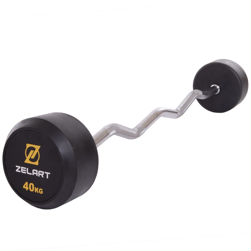 Штанга нерозбірна з фіксованою вагою вигнута гумова Zelart Rubber Coated Barbell TA-2687-40 довжина-95см 40кг чорний