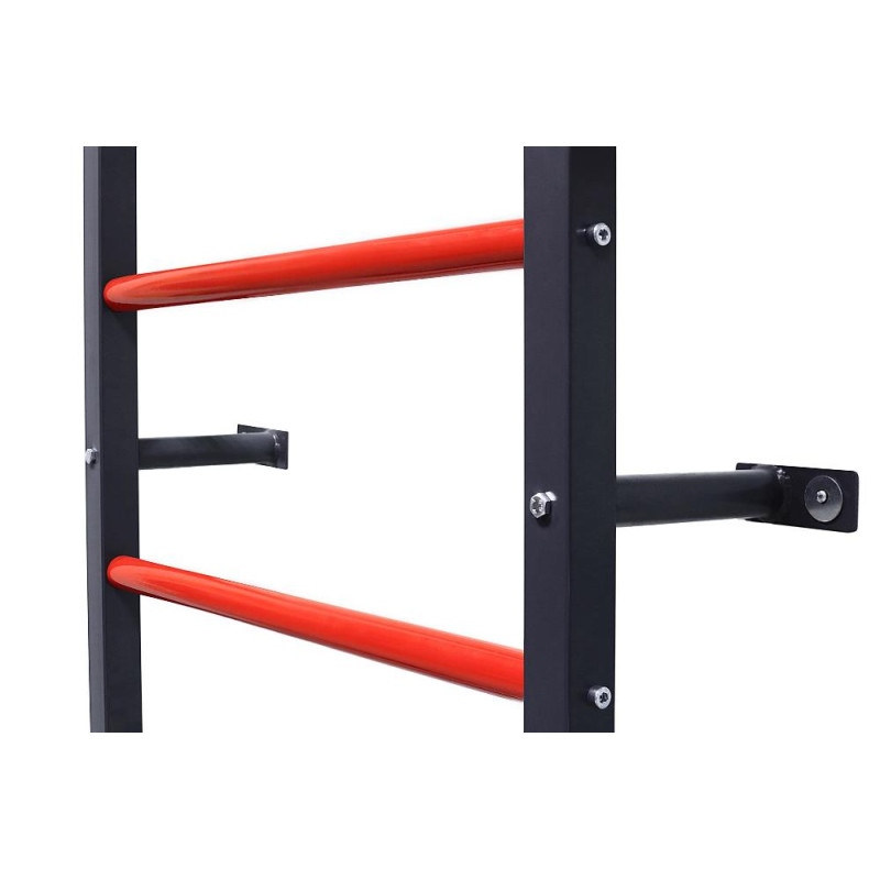 Шведська стінка від європейського бренду V`Noks (Вінокс) допоможе Вам продуктивно проводити тренування у комфортних умовах. Шведська стінка виготовлена з якісного та міцного металу, пофарбованого в сірий та червоний колір. Габаритний розмір складає 700*2200 мм. Кріплення здійснюється до стіни та в підлогу. Винос від стіни – 20 см.