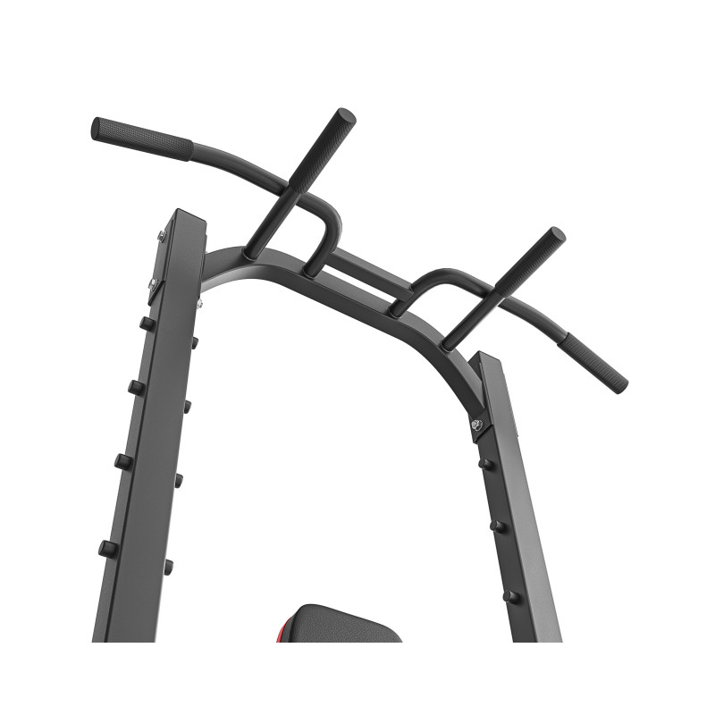 Поручні в центральній частині станції використовуються для виконання віджимань і висів. Вправи на поручнях ефективні для розвитку м'язів живота: прямих, косих внутрішніх і зовнішніх, а також поперечних. Крім того, вони забезпечують ефективне тренування рук, трицепсів і грудей. М'яка спинка та підлокітники, а також нековзкі ручки, гарантують безпеку і комфорт під час тренування.