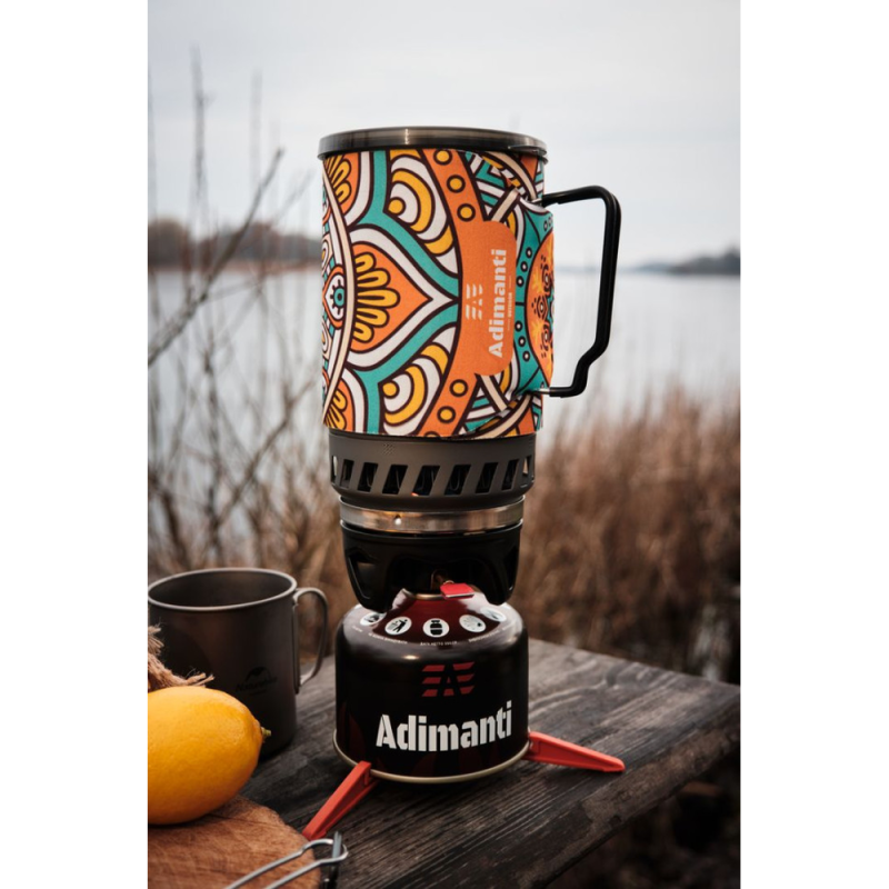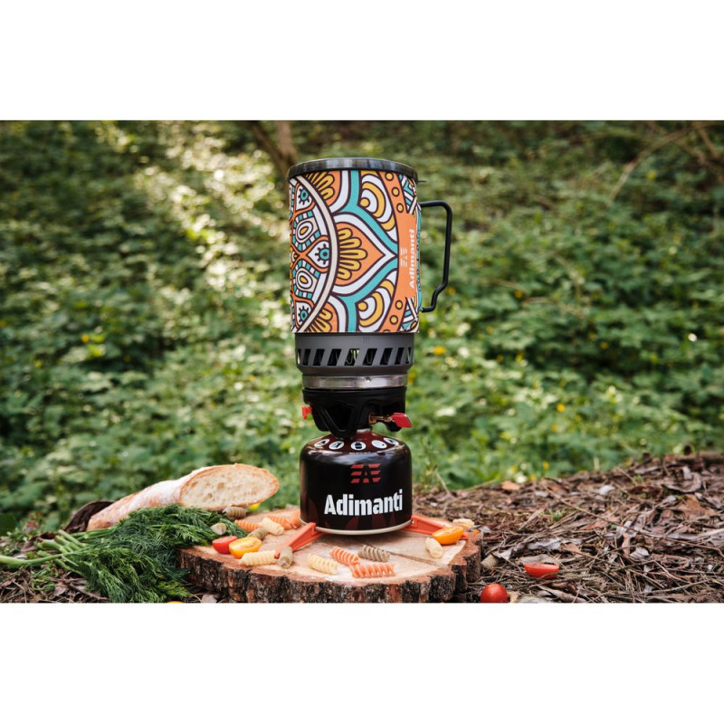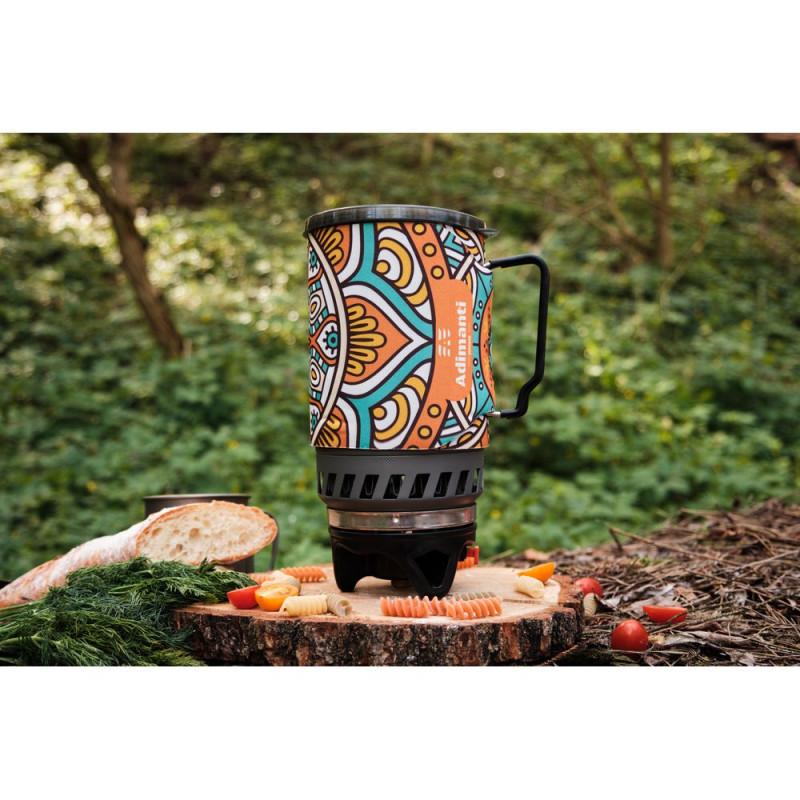 Газовий балон у наборі не передбачено. Працює система на пропані. Спосіб запалювання – електронне запалення. Максимальна ємність досягає 1400 мілілітрів. Нижню частину ви можете як з'єднати з каструлею, так і видалити, якщо в цьому є необхідність. Ефективне горіння без тепла. Вогонь не гасне під поривами вітру, тому не потрібно додатково купувати блокувальник вітру. Спеціальна ізолююча тканина допоможе уникнути опіків під час використання цієї системи.