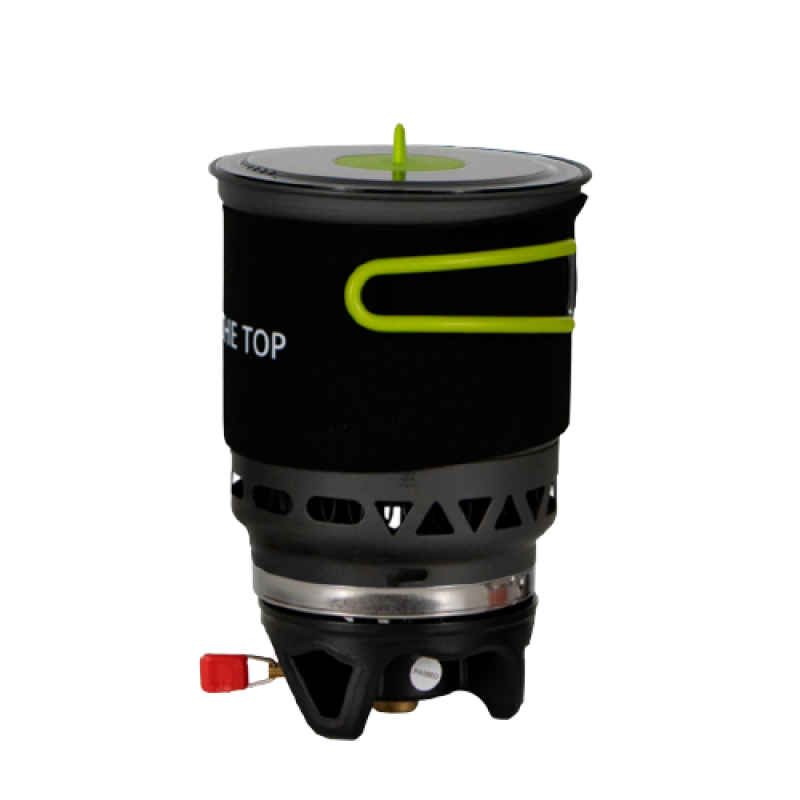 У комплекті не передбачено газового балона. Полум'я генерується рівне і потужне, і не гасне під поривами вітру. Матеріал комплекту: анодований алюміній, легкий та міцний. Великий котел оснащений спеціальною теплоізолюючою тканиною, щоб користуватися безпечно. Малий казанок має ручку із силікону – тому ви можете не побоюватися опіків. У пальнику передбачили вбудований п'єзопідпал, щоб робота була простою та зручною.