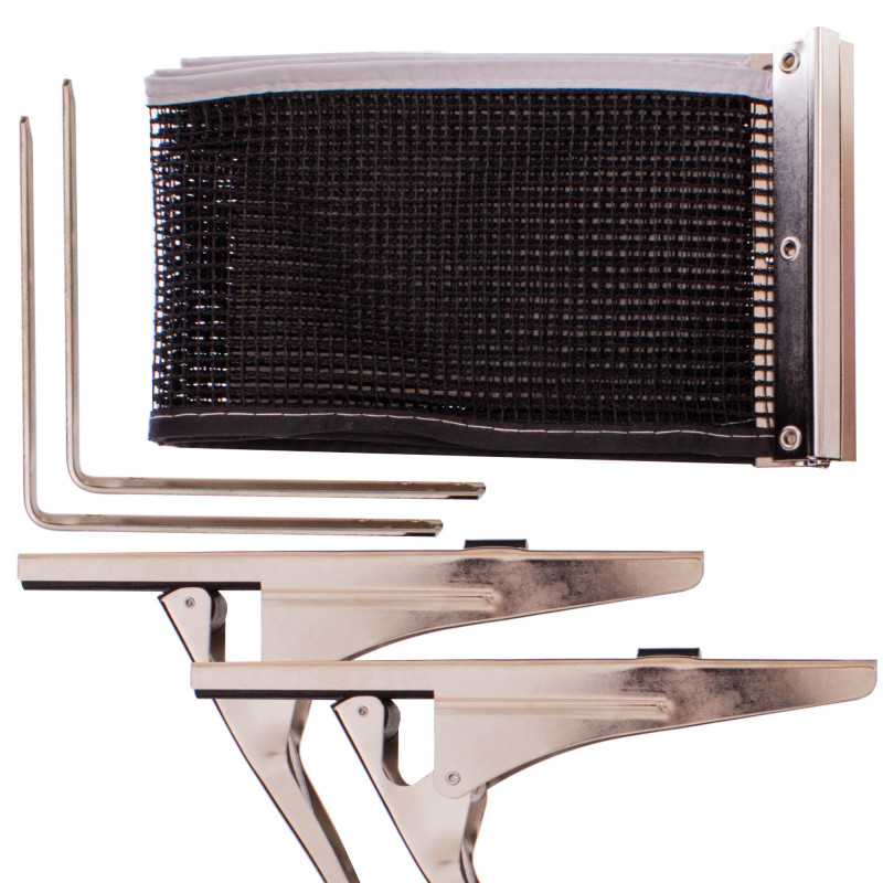 Сітка виготовлена з високоякісного нейлону стійкого до механічних пошкоджень, деформації та вологи. На її торцях є металеві роз'єми, які надягають на стійки, що закріплюються у кріпленнях таким чином, щоб можна було відрегулювати довжину сітки. Кріплення встановлюються на стіл за допомогою кліпсових затискачів із гумовими прокладками, які забезпечують надійну фіксацію. Також вони оберігають поверхню столу від подряпин. Для зберігання та перенесення сітки передбачено чохол з полівінілхлориду із замком-блискавкою та зручною ручкою.