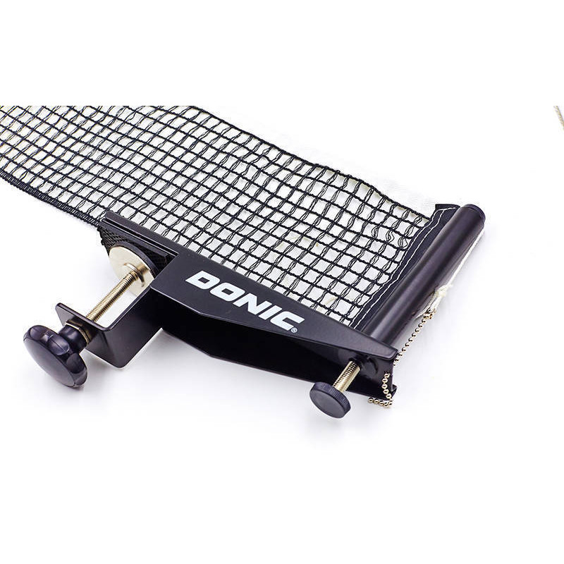 Сітка виготовлена з високоякісного нейлону – міцного, стійкого до механічних пошкоджень та впливу навколишнього середовища матеріалу. По верхньому краю сітки йде кромка з тасьми, яка захищає її від пошкоджень, а також є своєрідним орієнтиром для гравців. На столі сітка фіксується за допомогою гвинтових кріплень, конструкція яких дозволяє відрегулювати її довжину. Таким чином забезпечується гарний натяг та усувається провисання, що надзвичайно важливо для комфортної гри. Для перенесення сітки передбачено чохол з полівінілхлориду, оснащений якісним замком-блискавкою та зручною ручкою.