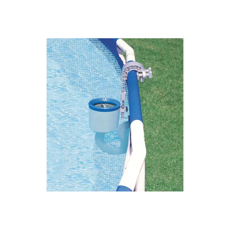 Якщо у вас є басейн з фільтрувальним насосом потужністю від 3000 літрів на годину, то Вам дуже бажано придбати скімер Intex 28000. Скімер дає змогу збирати сміття, листя, різних комах, які плавають на поверхні басейну. Адже він так і називається — поверхневий скімер Intex або "шумівка". скімер приєднується до бортика, як каркасного басейну, так і наливного (надувного) басейну, в якого зверху є надувне кільце для оперізування.