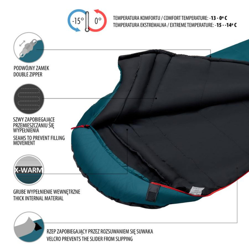 Однією з ключових особливостей спального мішка NC2005 є відмінна теплоізоляція. Завдяки використанню передових ізоляційних матеріалів цей спальний мішок зберігає тепло всередині в найскладніших погодних умовах. Навіть коли на вулиці температура нижче нуля градусів за Цельсієм, ви можете спати спокійно, у повному теплі та комфорті. Для ще більшого комфорту використання спальник має спеціальну прошивку, яка запобігає зсуву наповнювача. Спальний мішок NC2005 також був розроблений з урахуванням практичності та комфорту використання. Оснащений спеціальною системою застібки-блискавки, він дозволяє легко та швидко входити та виходити, не турбуючись про застрягання чи блокування блискавок. Завдяки правильному дизайну та ергономічній формі забезпечує свободу рухів і максимальний комфорт під час сну.