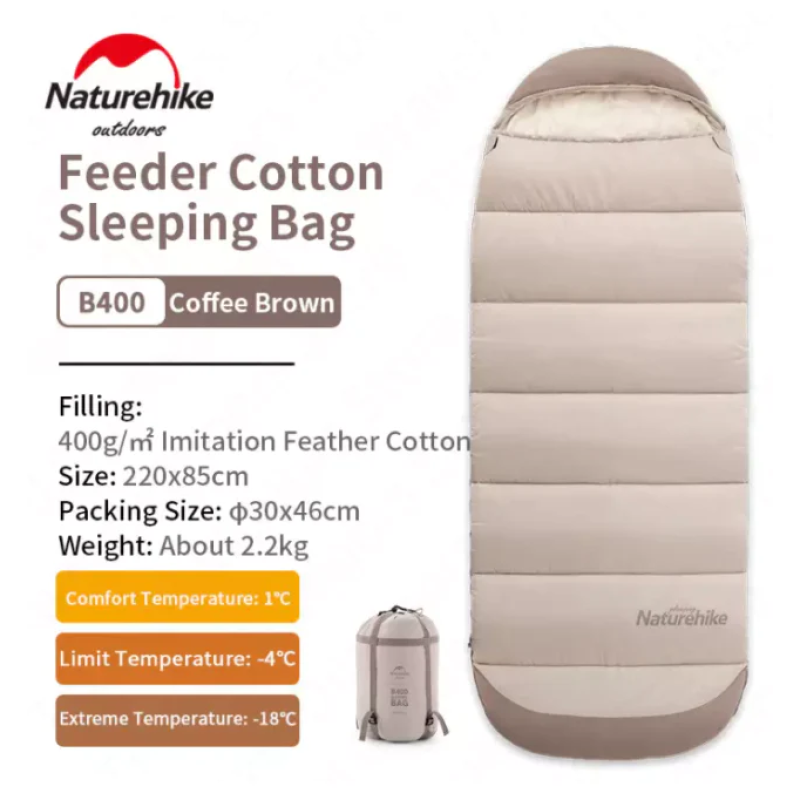 Спальний мішок Naturehike B400 — це функціональна модель, яка дозволяє комфортно відпочити на природі. Виріб легко складається і може використовуватись як ковдра або подушка. Завдяки наявності варіантів з блискавкою як з правого, так і з лівого боку користувач може об'єднувати два спальники в один.
