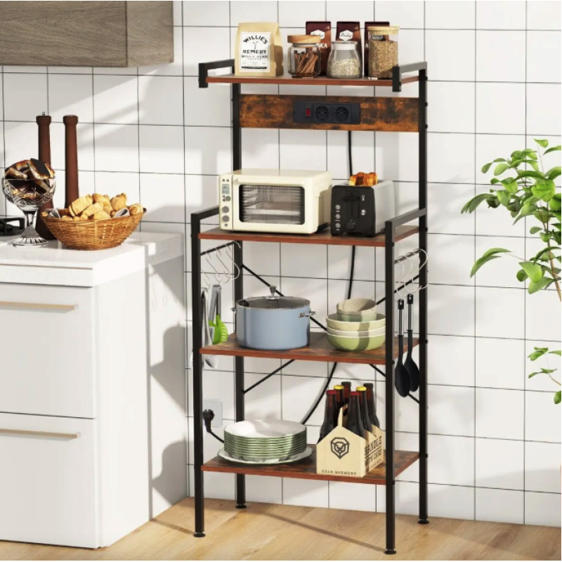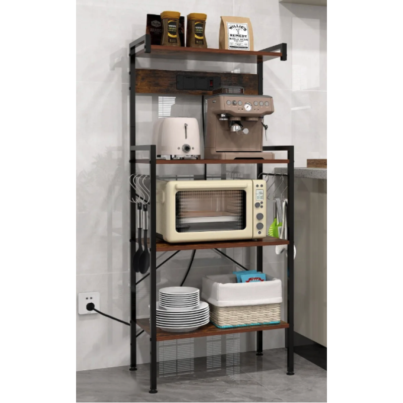 Щоденна кухня - це не лише місце для готування, а простір, де панують функціональність, організація і стиль. Саме тому стелаж кухонний у стилі Loft стане справжнім порятунком для тих, хто хоче зручно зберігати техніку, начиння, продукти і водночас підтримувати в інтер'єрі сучасну промислову естетику. Модель має виділену зону для мікрохвильової печі, 4 яруси для зберігання, 8 S-подібних гачків, вбудований подовжувач з розетками, а також посилену Х-скобу й комплекти для захисту від перекидання, що гарантує абсолютну стійкість. Завдяки регульованим ніжкам і міцному металевому каркасу, стелаж витримує високі навантаження та надає простору відчуття легкості. Це ідеальне рішення для кухні, студії, домашнього бару або офісу - адже працює там, де потрібно більше порядку і свободи.