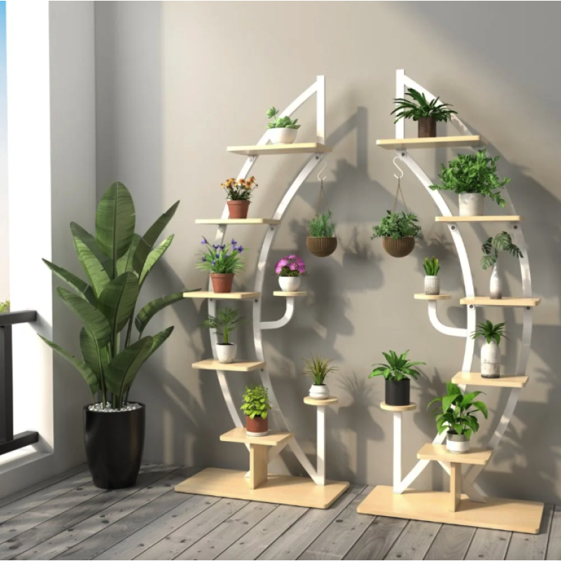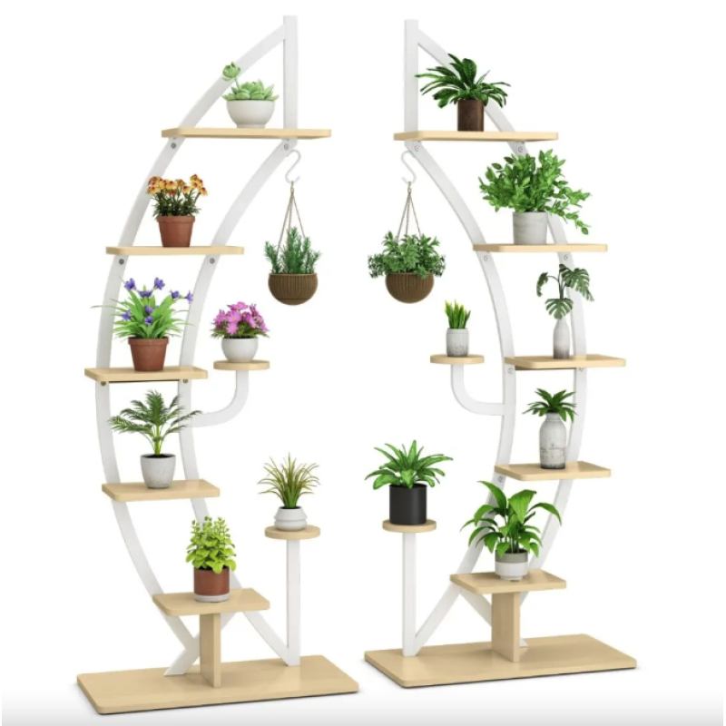 Іноді форма говорить більше, ніж слова. А коли ця форма - витончені півмісяці, що плавно огортають зелень у вазонах, тоді перед нами не просто стелаж, а справжній витвір мистецтва. Комплект з двох стелажів для квітів відомого бренду Costway у формі півмісяця - це втілення гармонії, балансу і природної естетики. Вигнуті лінії, наче з нічного небокраю, створюють ефект м'якого руху, додаючи динаміки інтер'єру. Ці стійки для рослин у горщиках не лише забезпечують простір для розміщення улюблених зелених улюбленців, а й створюють завершену композицію, яку можна змінювати за настроєм або порою року. Виготовлені з металу та деревини, ці металеві підставки для квітів гарантують стабільність, довговічність і візуальну витонченість. Ідеальні для тих, хто прагне поєднати природу, стиль та індивідуальність у власному домі.