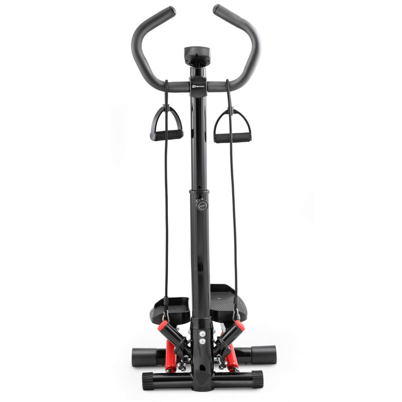 Переваги степпера: регулювання висоти колони, регулювання висоти педалей і зрозумілий, простий у використанні комп'ютер, який вимірює найважливіші параметри тренування. Крім того, завдяки двом прикріпленим еспандерам ви також задієте верхні частини.