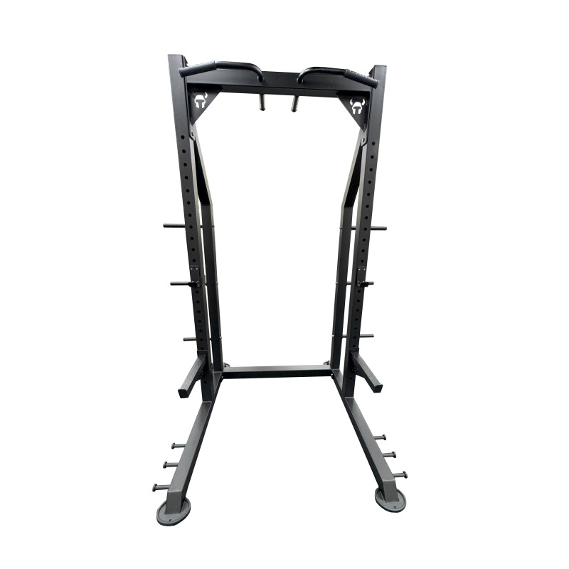 - Зручні упори: Оснащена страхувальними упорами для безпечного виконання присідань з максимальними вагами.