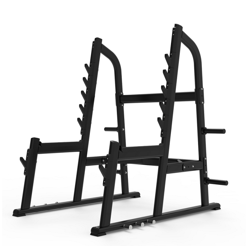 - Вертикальні стійки із шістьма фіксаторами штанги. Стильні закруглені молдинги надійно оберігають поверхню стійки та грифів від сколів та подряпин.