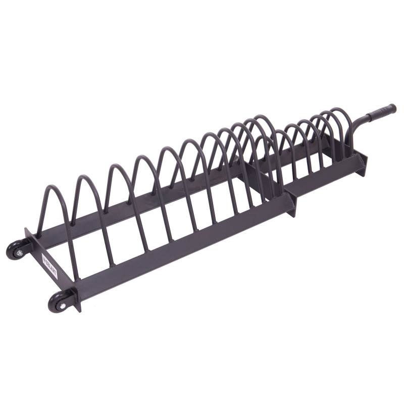 Горизонтальна стійка призначена для зберігання дисків для штанги. Завдяки кількості секцій і ширині стійки на ній можна розмістити повний комплект дисків. Це чудове рішення для комерційного залу, яке мотивуватиме відвідувачів повертати інвентар на місце і дасть змогу швидко знаходити диски необхідної ваги.