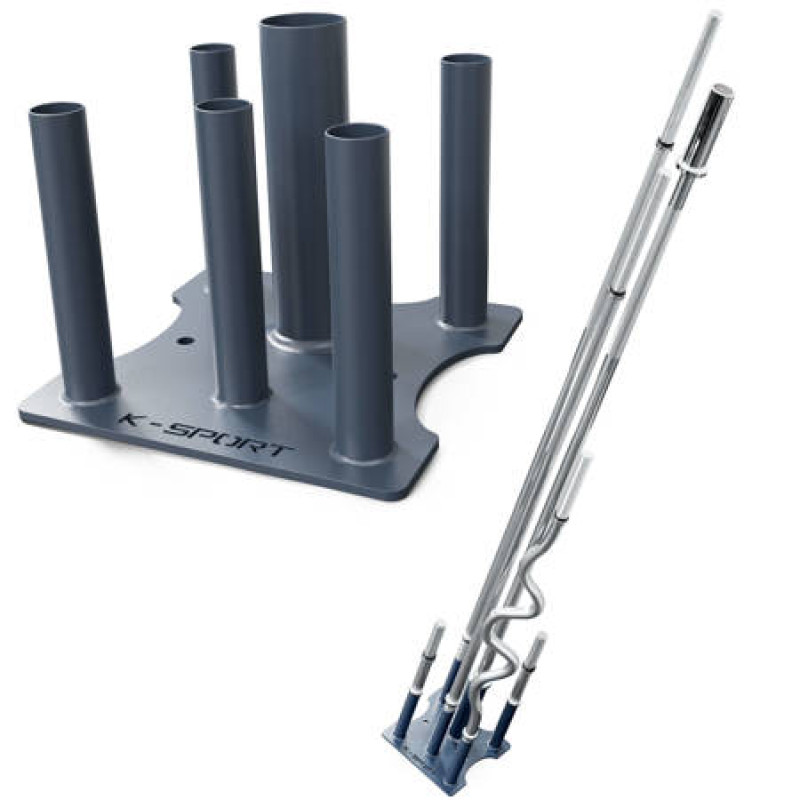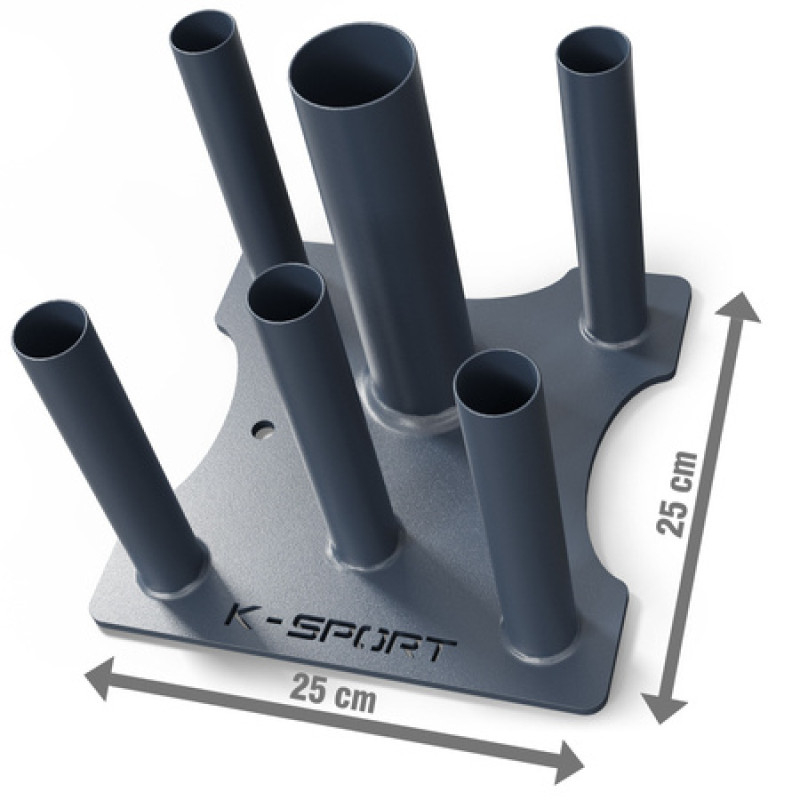 Наведіть закон і порядок у ваш спортзал завдяки стійкі K-SPORT. П'ять труб з внутрішнім діаметром 29 мм і одна діаметром 52 мм дозволять розмістити цілих шість різних горловин.