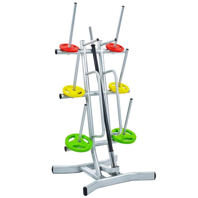 Стійка призначена для зручного зберігання дисків, грифів і бодібарів і може використовуватися у фітнес-клубах, кросфіт-залах, професійних або домашніх спортзалах. Завдяки тому, що конструкція вертикальна, стійка займає мінімум місця й особливо актуальна для невеликих тренажерних залів. Виріб забезпечує місце для зберігання декількох повних комплектів (грифи, млинці, замки), спрощує підтримання порядку в залі та робить тренування безпечнішими.