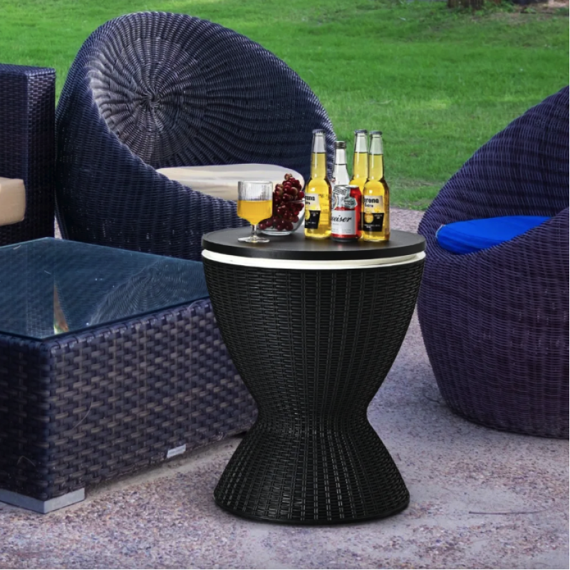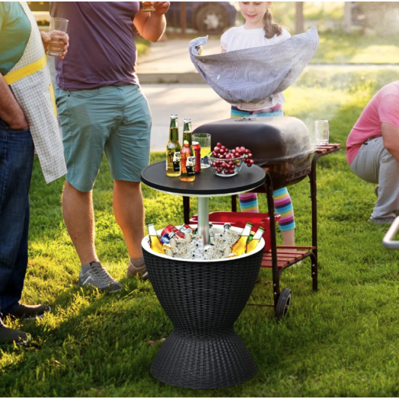 Уяви ідеальну літню вечірку: друзі, напої, легкий вітерець і зручне місце, де всі улюблені напої залишаються холодними, а закуски під рукою. Саме таким рішенням є Costway Curver 3-в-1 - стіл холодильник з регульованою висотою, який поєднує функціональність барного столу, відра для льоду та вуличного декору в стилі ротанга. Він стане справжнім центром подій на терасі, біля басейну чи під час кемпінгу. Його об'єм 30 літрів дозволяє розмістити багато напоїв або фруктів, а регульована висота (57см або 82см) дозволяє використовувати Curver як низький кавовий столик або барну стійку. Завдяки дренажній пробці, міцному PP-пластику, стійкості до сонця й води - він ідеально підходить для тривалого використання на відкритому повітрі. І, звісно, стільниця витримує до 75кг, тож це не просто декор, а справжній елемент інфраструктури твого відпочинку.
