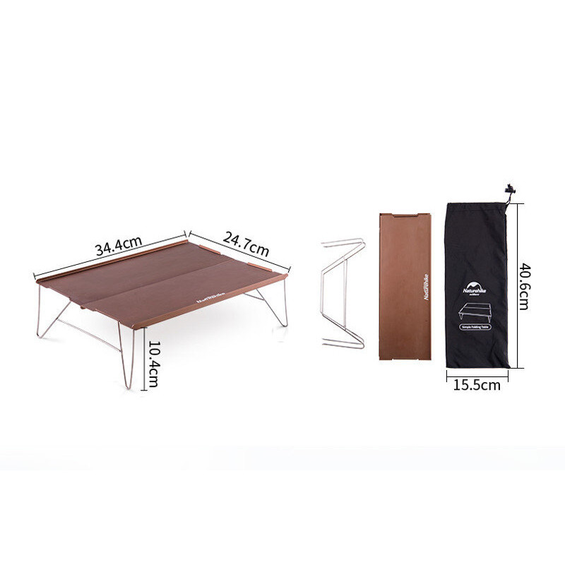 Складаний похідний столик Naturehike Compact Table 344х247х104 мм, дуже легкий і компактний. Його можна брати в будь-яку поїздку, має полегшений алюмінієвий каркас, зручний при транспортуванні. Стільниця виготовлена з міцної тканини, яка захищає від вологи і намокання. Стіл має міцну конструкцію, тому буде міцно стояти на будь-якій поверхні. Для зручного транспортування є чохол розмір 406х155 мм