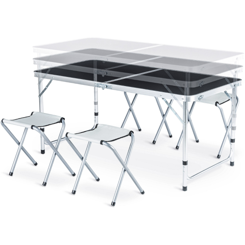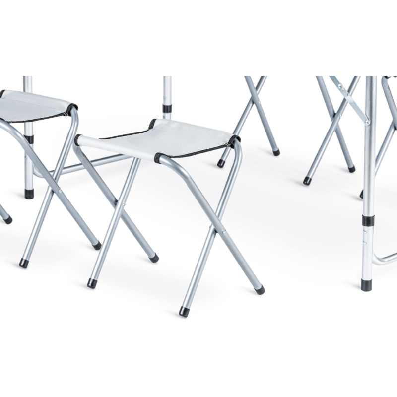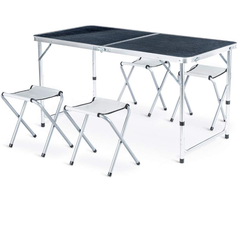 На сімейному пікніку чи у туристичній подорожі хочеться відпочивати із максимальним комфортом. Складаний стіл з чотирма стільцями для сім'ї або невеликої компанії - це просто ідеальне рішення. Стіл регулюється по висоті на 3 рівня, що додає зручності для посиденьок компанії будь-якого зросту та віку.