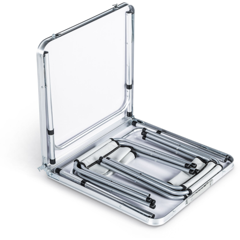 Набір складається до компактних розмірів, що дозволить вам зекономити місце для зберігання! Стіл зі змінною висотою легко та просто складається у невелику валізу, в якій ви також можете зберігати стільці. Завдяки цьому комплект займає мало місця, і ви можете взяти його з собою, у кемпінг або у поїздку на природу. Для зручності транспортування комплект Outtec оснащений додатковою ручкою.