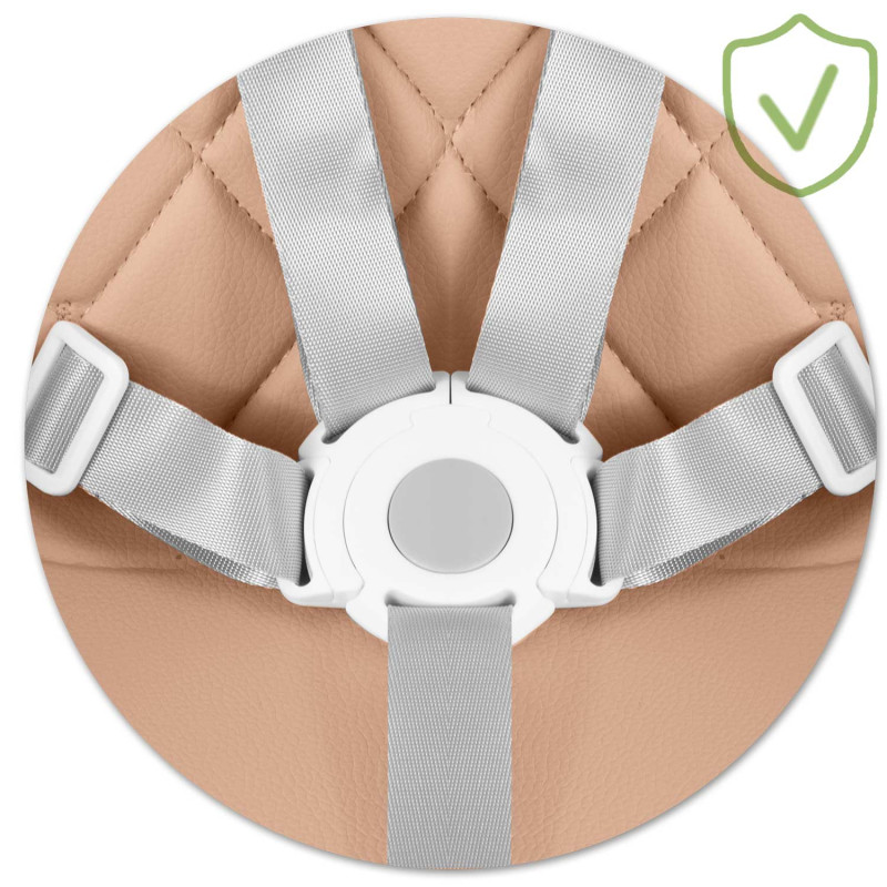 Ремені безпеки. Надійні та перевірені п'ятиточкові ремені безпеки гарантують, що ваша дитина не зможе самостійно покинути крісло і не впаде.