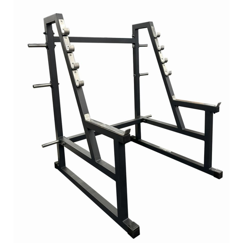 - Зручні упори: Оснащена страхувальними упорами для безпечного виконання присідань з максимальними вагами.