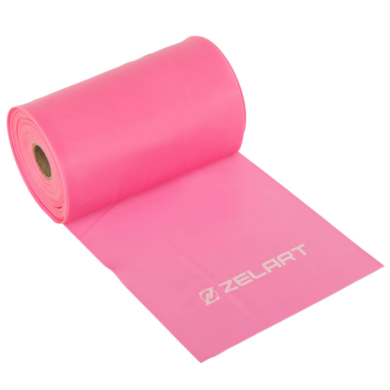 Стрічка еластична — це універсальний спортивний інструмент для занять фітнесом, йогою і домашніх тренувань. Модель виконана з TPE і має високу зносостійкість. Цей матеріал набагато рідше, ніж латекс, викликає алергічні реакції на шкірі та характеризується високою еластичністю. Довжина стрічки 12 м, ширина - 15 см. Розмір дає змогу виконувати різноманітні вправи, зручний для захоплення та фіксації. Колір стрічки відповідає рівню опору: рожева стрічка має 2 рівень, легкий.