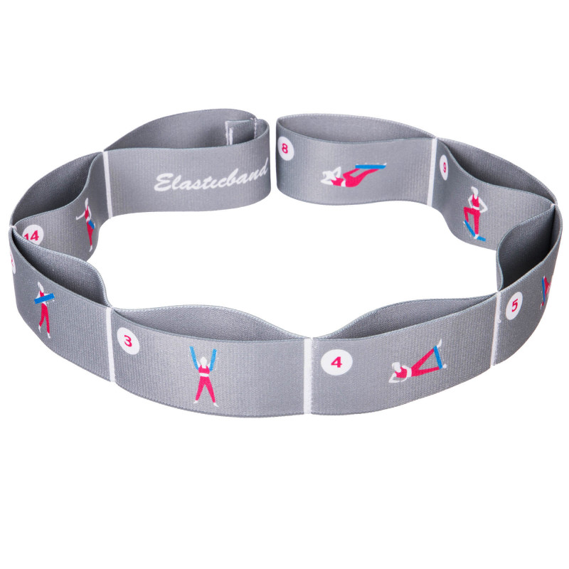 Стрічковий еспандер Elastiband є прошитою з обох боків еластичною стрічкою з вісьмома петлями. На кожну з петель нанесено цифру, завдяки чому можна вибрати необхідний рівень розтяжки. А малюнки на петлях інформують про те, які саме вправи можна виконувати за допомогою цього еспандера.