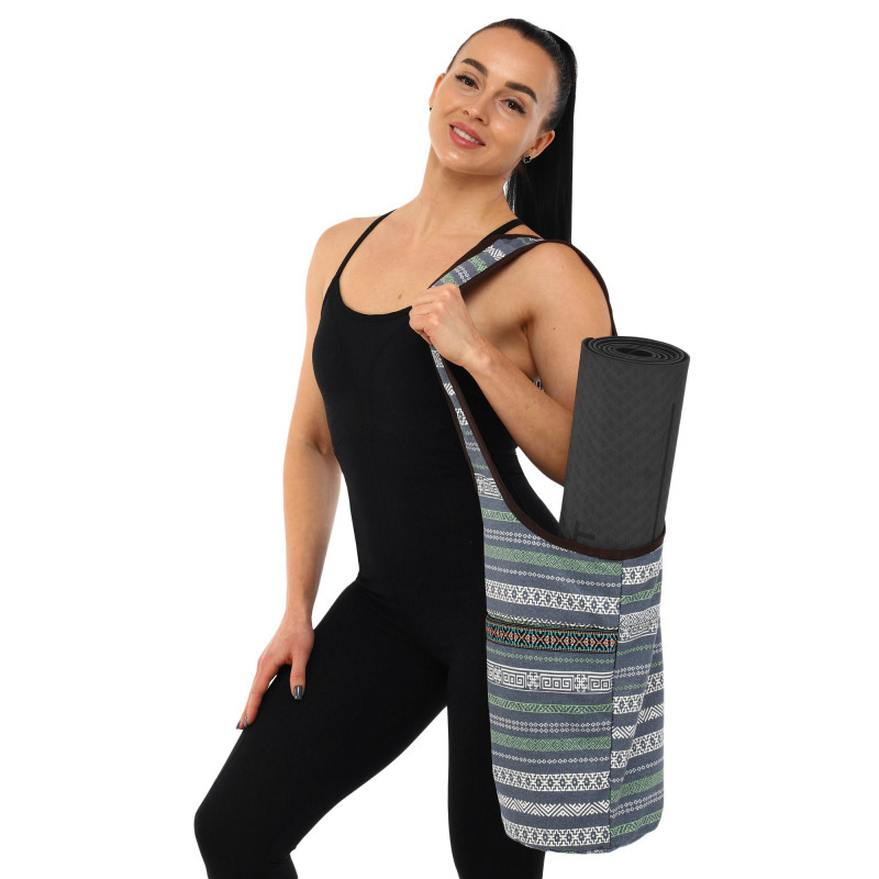Яскрава та стильна сумка для йоги та фітнесу допоможе взяти все необхідне на тренування. Аксесуар має одну лямку, його можна носити через плече. Сумка виготовлена із суміші натуральних і синтетичних матеріалів.
