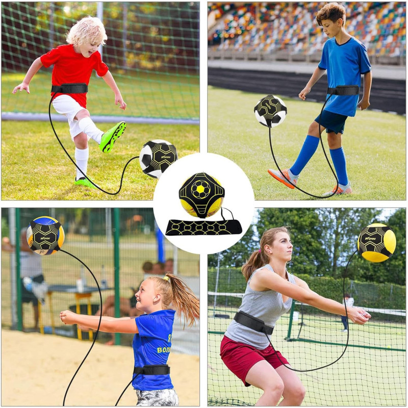 Для відпрацювання точності ударів у футболі можна використати футбольний тренажер. Пояс має універсальний розмір, що застібається за допомогою липучки. Гумка, за яку м'яч кріпиться до пояса, розтягується до 2,16 м-коду. М'яч поміщається у спеціальне кріплення, воно застібається на липучки. Можна використовувати м'ячі різного розміру, оскільки розмір кріплення можна міняти.