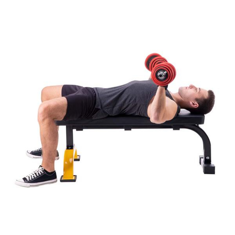 Товщина губки дуже важлива, оскільки вона має прямий вплив на ідеальне положення тіла. Сучасна карбонова оббивка стійка до вологи та поту і запобігає ковзанню тіла під час тренування. Вона також дуже приємна на дотик. Стильний дизайн Лавка зручна і функціональна, але при цьому стильна.