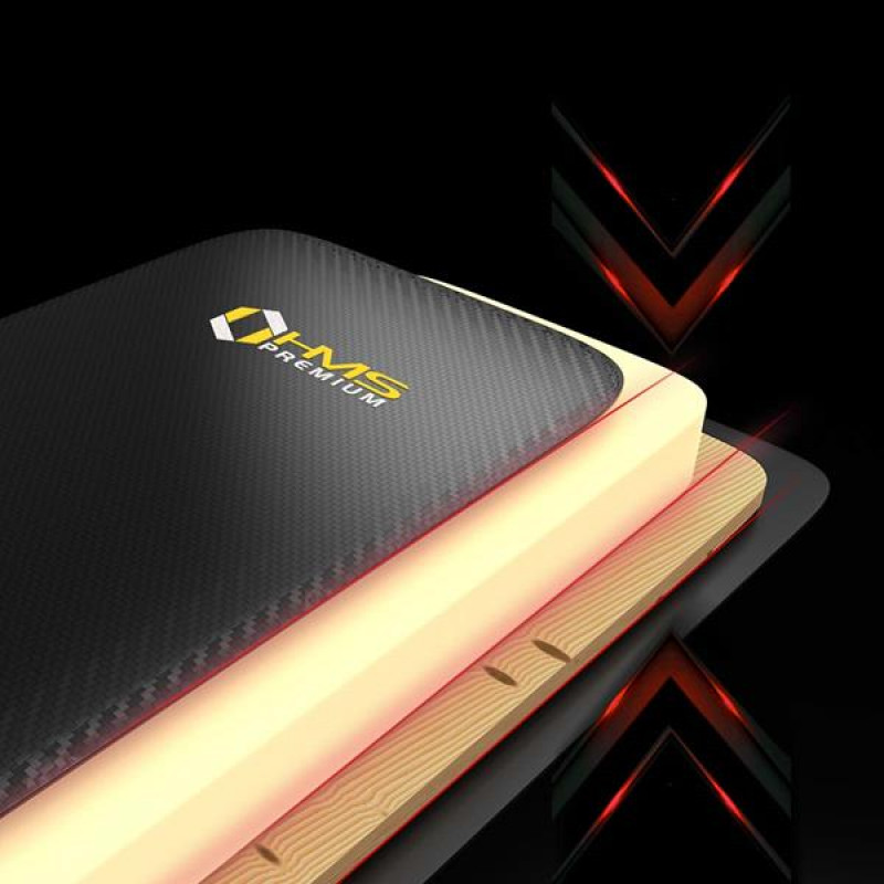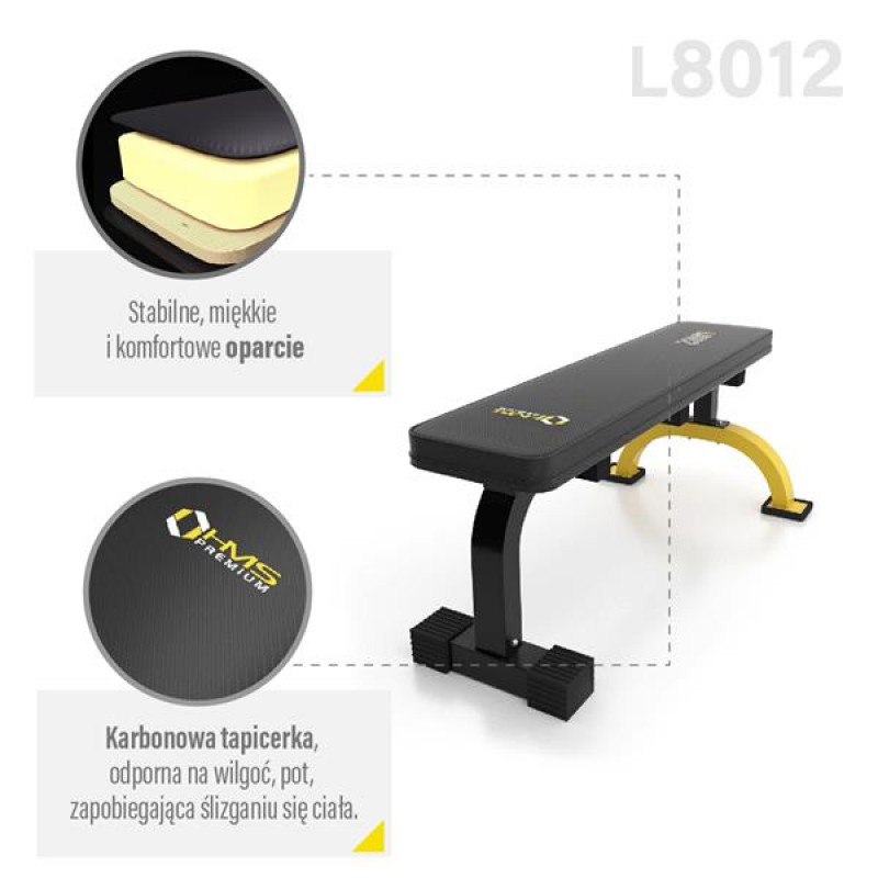 Поєднання чорного карбонового матеріалу з жовтими вишитими елементами дає чудовий візуальний ефект, характерний для бренду HMS PREMIUM. Виняткова якість виконання та естетика лави L8012 HMS PREMIUM роблять її ідеальним обладнанням для домашніх тренажерних залів.