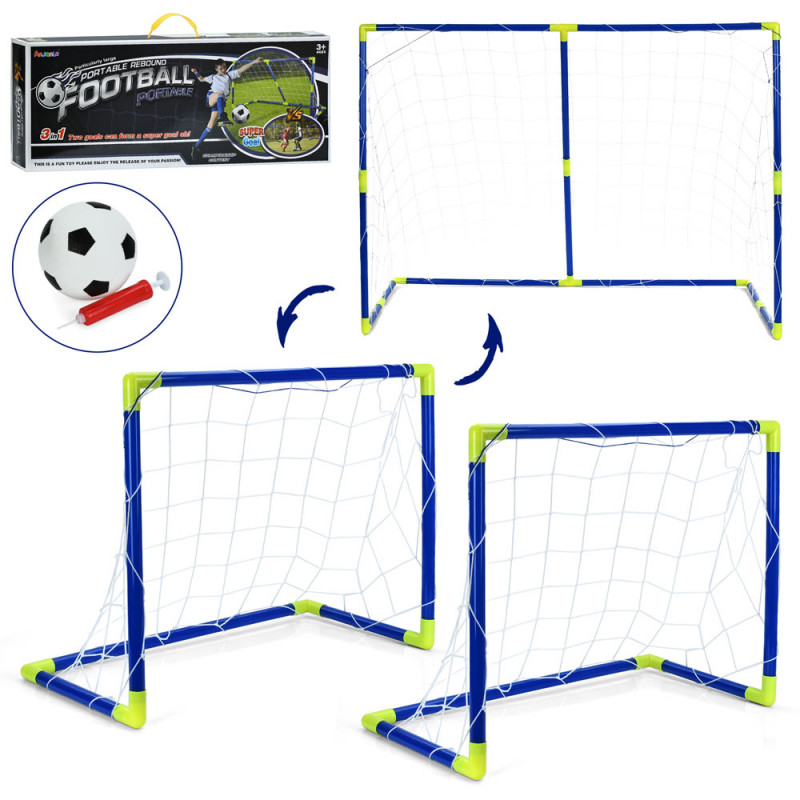 Футбольний набір 2 в 1 — відмінне рішення для активних ігор вдома та на вулиці. Завдяки універсальній конструкції ви можете використовувати ворота як одну велику модель або розділити їх на дві компактні.