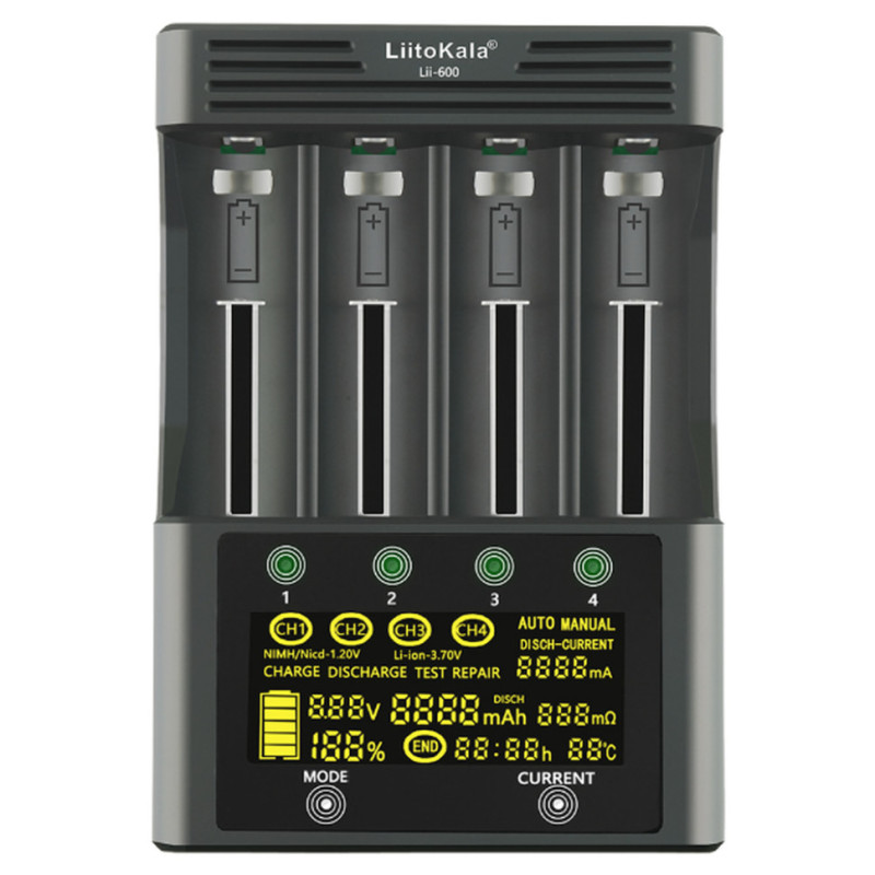 LiitoKala Lii-600 — інтелектуальний зарядний пристрій з інноваційною функцією сенсорного керування. За допомогою торкань ви можете перемикатися між режимами роботи, налаштовувати струм та інші показники для ефективної роботи.