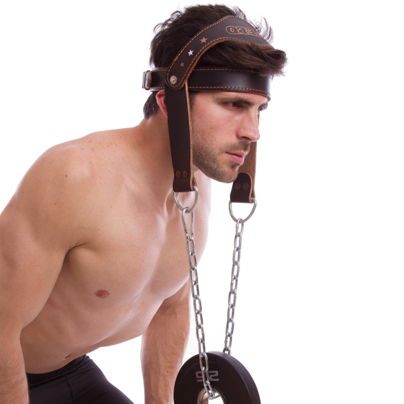 Широкі ремені для голови забезпечують комфортну посадку і мінімальний дискомфорт під час підняття вантажу. Вони дуже міцні та довговічні, що гарантує довгий термін служби тренажера. На потилиці розташовується пряжка для регулювання розміру, з'єднання ременів виконані з металу.