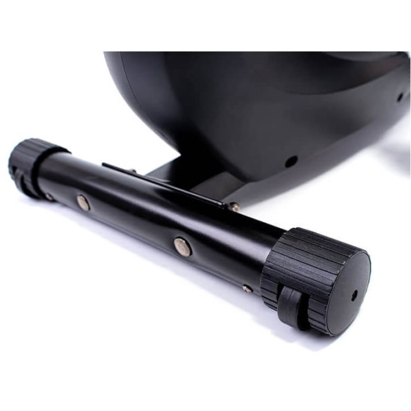 Задня частина обладнання оснащена спеціальними вигнутими ніжками, які гарантують всьому тренажеру відмінний рівень стійкості навіть під час найінтенсивніших тренувань. Крім цього ніжки мають особливі регулятори, що забезпечують стійкість і баланс велотренажера на будь-яких твердих поверхнях, зокрема і не дуже рівних.