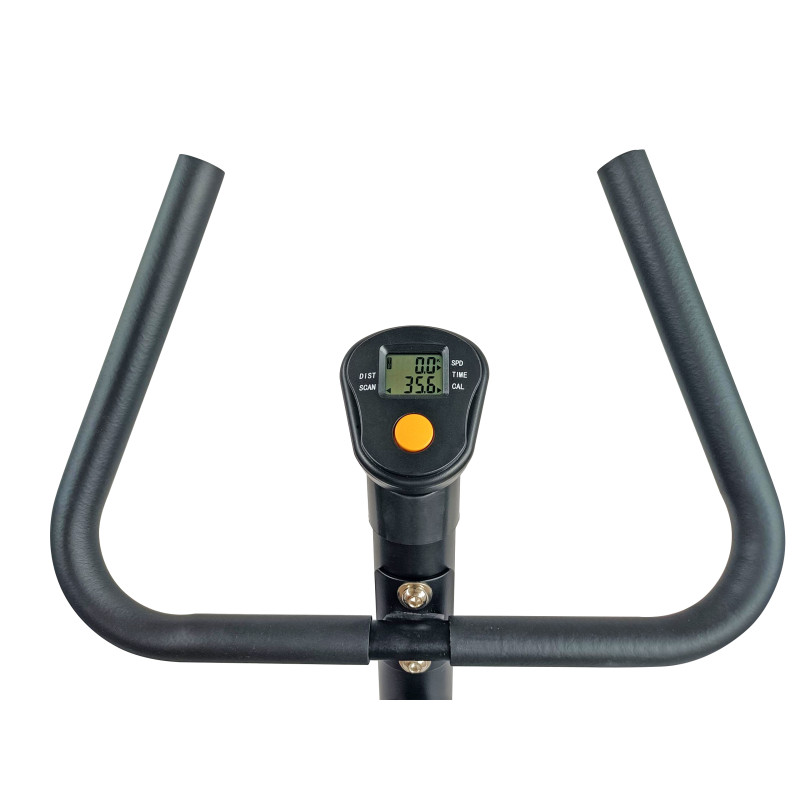 Вбудований монохромний LED дисплей тренувального комп'ютера відображає ключові показники вашого тренування: час (TIME), відстань (DISTANCE), калорії (CALORIES), швидкість (SPEED) та функцію SCAN, що перемикає відображені дані. Живлення від двох батарейок типу AAA чи UM-4 гарантує тривалу та безперебійну роботу комп'ютера. Це дозволяє вам повністю контролювати свої досягнення та мотивує до нових спортивних вершин. Велотренажер для дому з таким функціоналом стане незамінним помічником у досягненні ваших спортивних цілей.