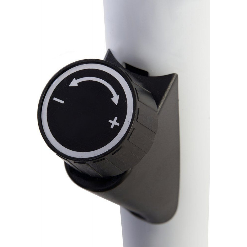 Сидіння велотренажера велике, м’яке та регульоване по висоті, що дозволяє налаштувати його під зріст кожного члена сім’ї. Основною перевагою моделі є плавне регулювання опору за допомогою поворотного механізму. Це дає змогу поступово збільшувати інтенсивність тренувань, контролювати навантаження та спостерігати за прогресом.