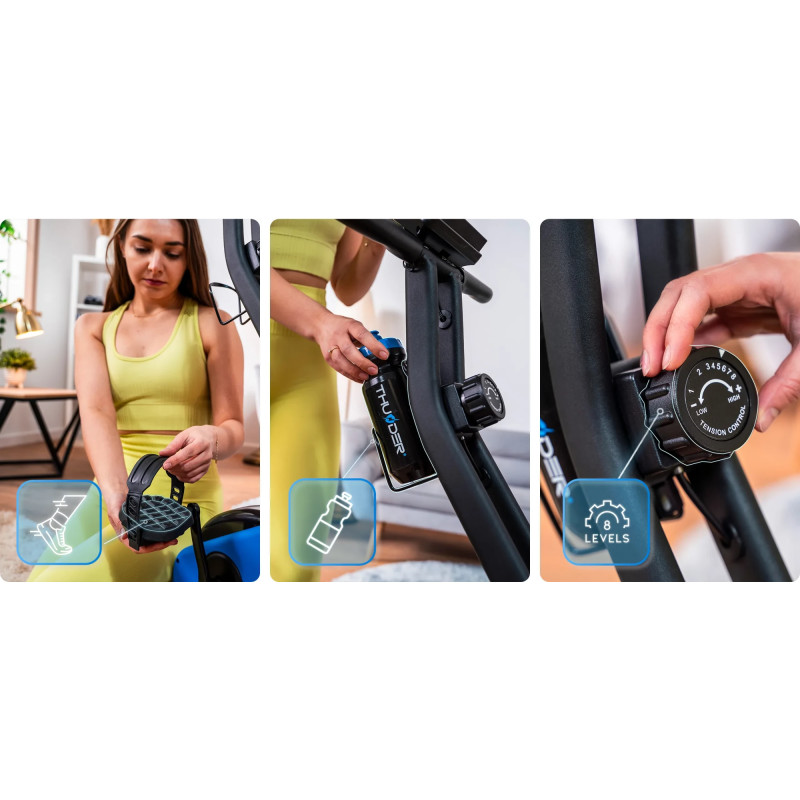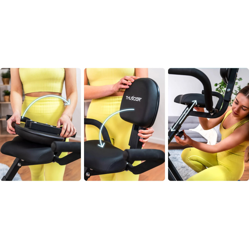 - Зручна спинка – бренд THUNDER пропонує версії X-Bike зі спинкою для більшого комфорту, особливо під час тривалих тренувань. Крім того, спинку можна скласти для зручного зберігання.