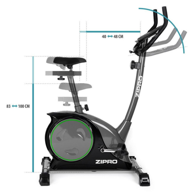 Велосипед Zipro Nitro легко адаптувати до ваших фізичних умов та інших сім'янин, які також хочуть ним користуватися. Ви можете налаштувати висоту, відстань до керма та кут нахилу сідла, а також кут керма. В результаті під час їзди ваше тіло займає найбільш зручне положення, що сприяє безпеці та високій ефективності тренувань.