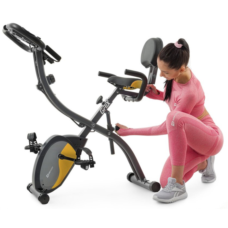 Модель X-Bike HS-3010x Grix - справжній прорив у поколінні велотренажерів! X-Bike - це складний сучасний велотренажер з безліччю зручних функцій: сидіння зі спинкою, що забезпечує природне положення хребта, а отже, впливає на комфортність тренувань; контроль рівня опору, що дозволяє регулювати інтенсивність тренувань під свої потреби. Удосконалений комп'ютер дозволить виміряти такі важливі параметри, як час, швидкість, відстань і пульс, які так важливі під час фізичної активності. Тренажер ідеально підходить для невеликих приміщень, оскільки має функцію складання, що дозволяє заощадити простір.