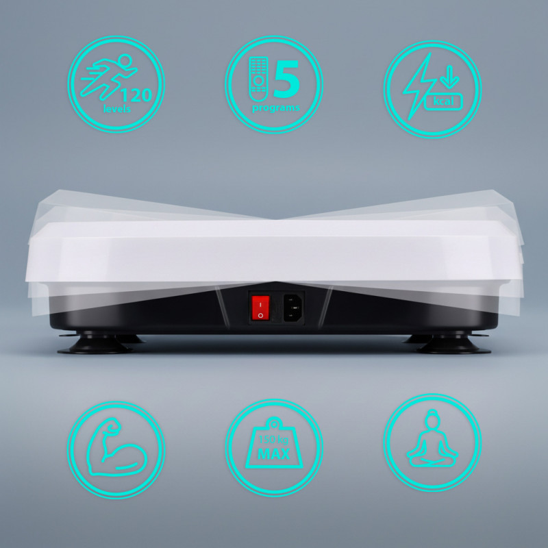 Платформа оснащена 5 вбудованими тренувальними програмами, які автоматично регулюють робочі параметри, допомагаючи досягти різних тренувальних цілей – від поліпшення кровообігу до зміцнення м’язів. Крім того, доступне ручне регулювання часу тренування від 1 до 20 хвилин, що дозволяє ідеально адаптувати тренування до індивідуальних потреб.