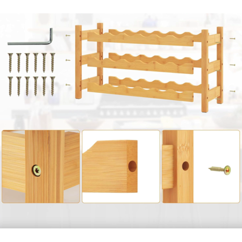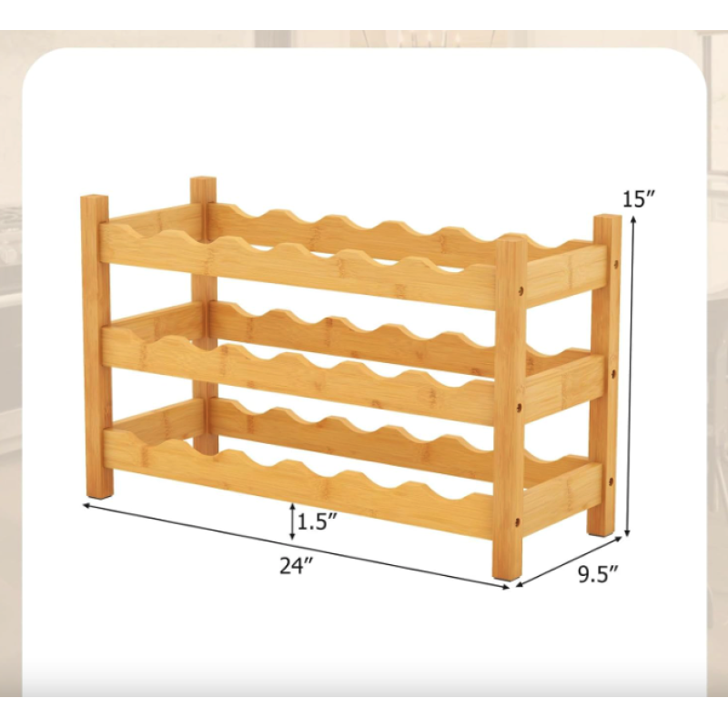 У світі, де стиль і функціональність повинні йти пліч-о-пліч, винна стійка стає справжньою перлиною для поціновувачів витонченого смаку. Вона не просто зберігає ваші улюблені вина, а елегантно підкреслює їх цінність у просторі, додаючи атмосферу благородства та гармонії. Виконана зі 100% натурального бамбука з поліуретановим покриттям, ця триярусна конструкція втілює природну красу в поєднанні з міцністю і довговічністю. Її хвилеподібні слоти не тільки утримують кожну пляшку в надійному положенні, а й створюють плавну візуальну динаміку, яка додає інтер'єру шарму. Ідеальний кут нахилу дбайливо підтримує пробку вологою, зберігаючи смакові властивості напою. Якщо ви мрієте про винний куточок, який не тільки організує простір, а й перетворить його на дизайнерський акцент - Costway Wenko стане вашим беззаперечним фаворитом.