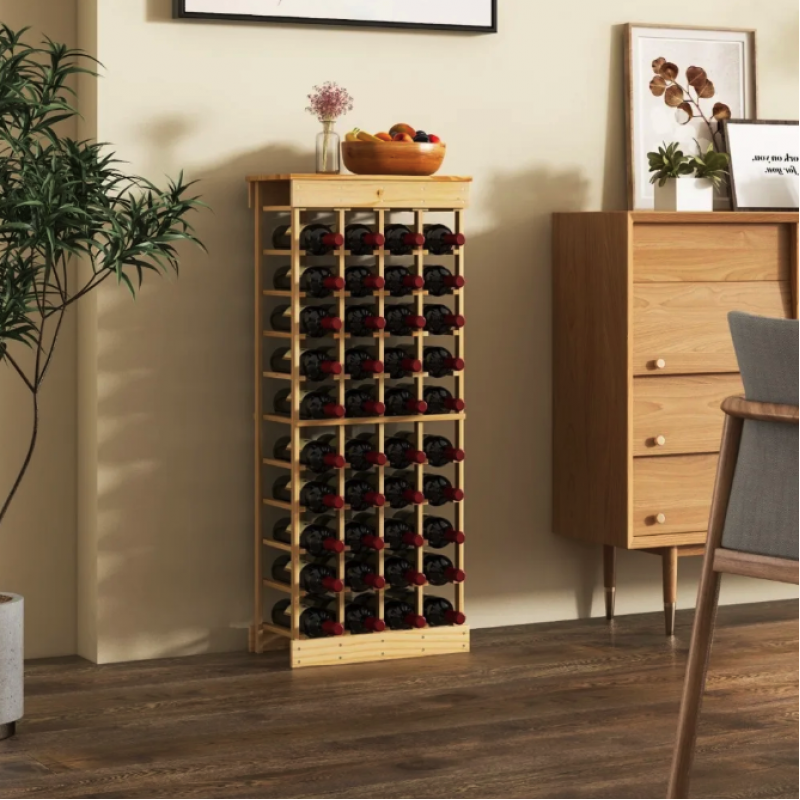 Колекціонування вина - це не просто хобі, а справжнє мистецтво, яке потребує гідної презентації. Саме для таких цінителів створено винний стелаж Costway Vevor, що поєднує функціональність, простоту та естетику. Виготовлений із натуральної сосни, він дарує відчуття тепла та затишку, при цьому зберігає вашу колекцію в ідеальному порядку. Його 10 ярусів вміщують до 40 пляшок вина, а завдяки міцній дерев'яній конструкції, стелаж не тільки витримує навантаження до 100кг, але й чудово виглядає в будь-якому інтер'єрі - від кухні до винного погребу. Це стелаж для вина з дерева, який підкреслить ваш смак і організує простір із винятковою зручністю.