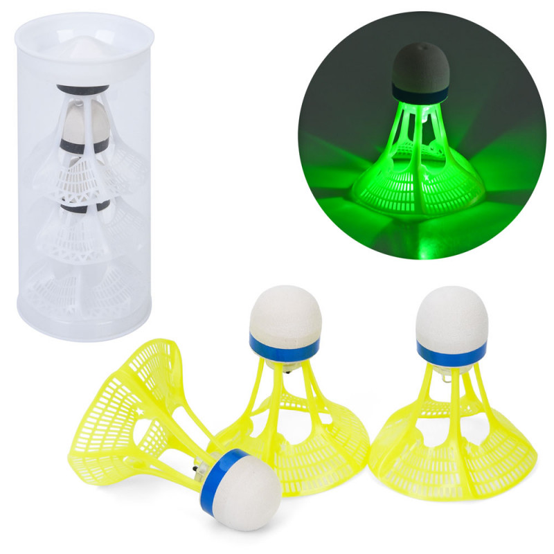 Набір світних воланів — чудовий вибір для гри в бадмінтон навіть у темний час доби. Волани виготовлені з міцного нейлону і поліуретану, забезпечуючи стабільний політ і довговічність. Кожен волан оснащений вбудованим LED-світлом, що працює від таблеткової батарейки.