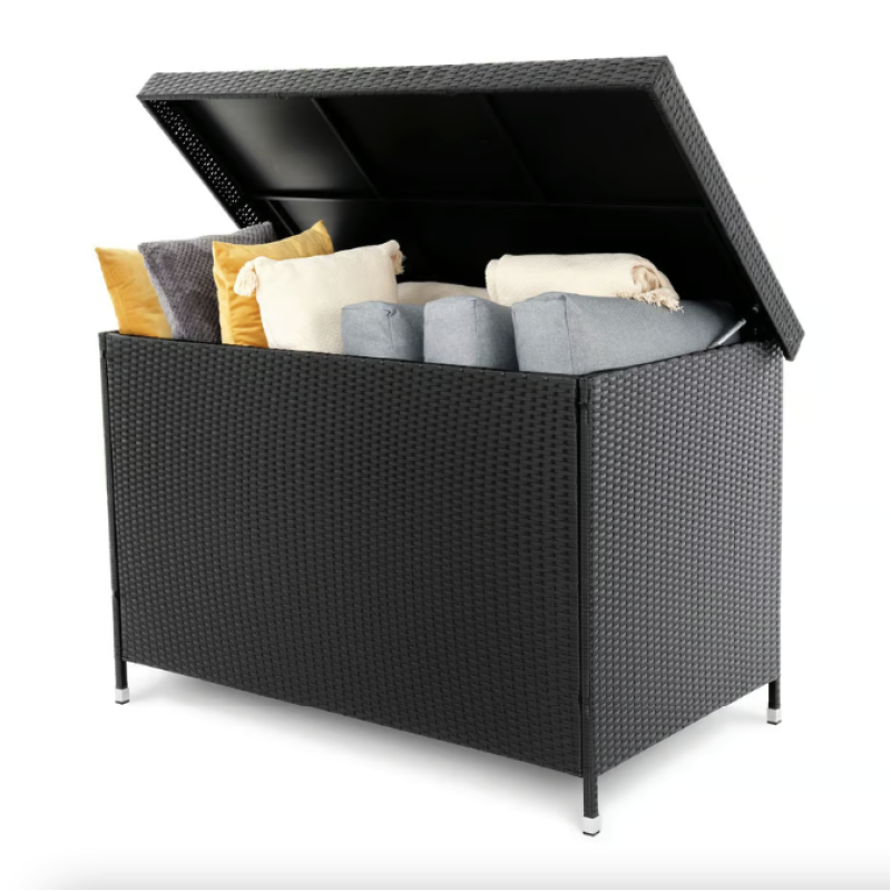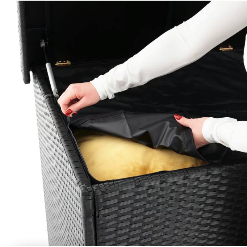 Садова скриня Varise - це не просто коробка для зберігання, а універсальне рішення для тераси, саду чи балкона, яке поєднує в собі естетику, місткість та надійний захист вмісту. Виготовлений із високоякісного техноротанга в поєднанні зі сталевим каркасом, ящик вирізняється сучасним дизайном і надзвичайною стійкістю до зовнішніх факторів. Завдяки місткості 740 літрів, ви з легкістю зберігатимете подушки, пледи, садовий інвентар, іграшки чи сезонний текстиль. Акуратна форма, сірий відтінок та якісне оздоблення роблять Varise чудовим доповненням до меблів у стилі ротанг - перегляньте інші товари з колекції для створення гармонійного ансамблю!
