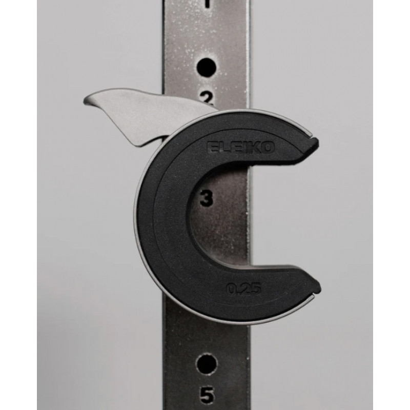 Інноваційні замки Eleiko Öppen із запатентованим дизайном швидко й надійно фіксують диски на грифі, підвищуючи ефективність тренувань і рівень безпеки. Просто розмістіть замок біля дисків і опустіть важіль для фіксації. Унікальна відкрита конструкція забезпечує зручність у користуванні та пришвидшує зміну ваги. Вага кожного замка — 0,25 кг (додаючи 0,50 кг до загального навантаження штанги при використанні).