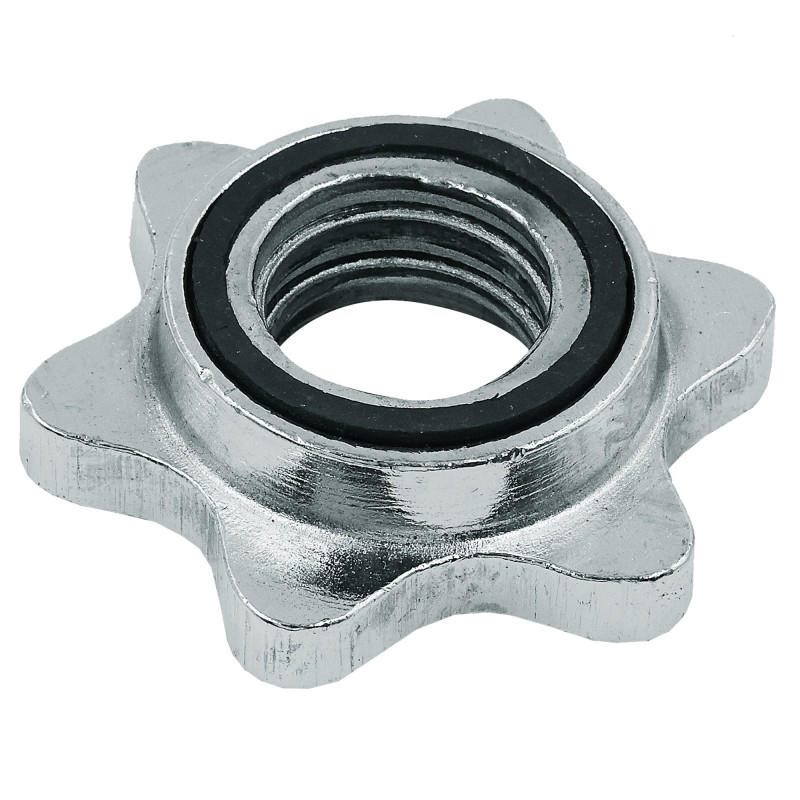 Замок гайка SHUANG CAI SPORTS TA-8058-28 виготовлений з міцного металу. Цей замок підходить для грифів із посадковими втулками, на яких є нарізане різьблення. Різьбовий замок дає змогу надійно зафіксувати вантаж, уникнути його зсуву й істотно зменшити шум під час виконання вправ зі штангою. Хромоване покриття забезпечує тривалий термін служби замка і робить його візуально більш презентабельним. Замок сумісний із грифами діаметром 28 мм, тобто підходить для класичного грифа.